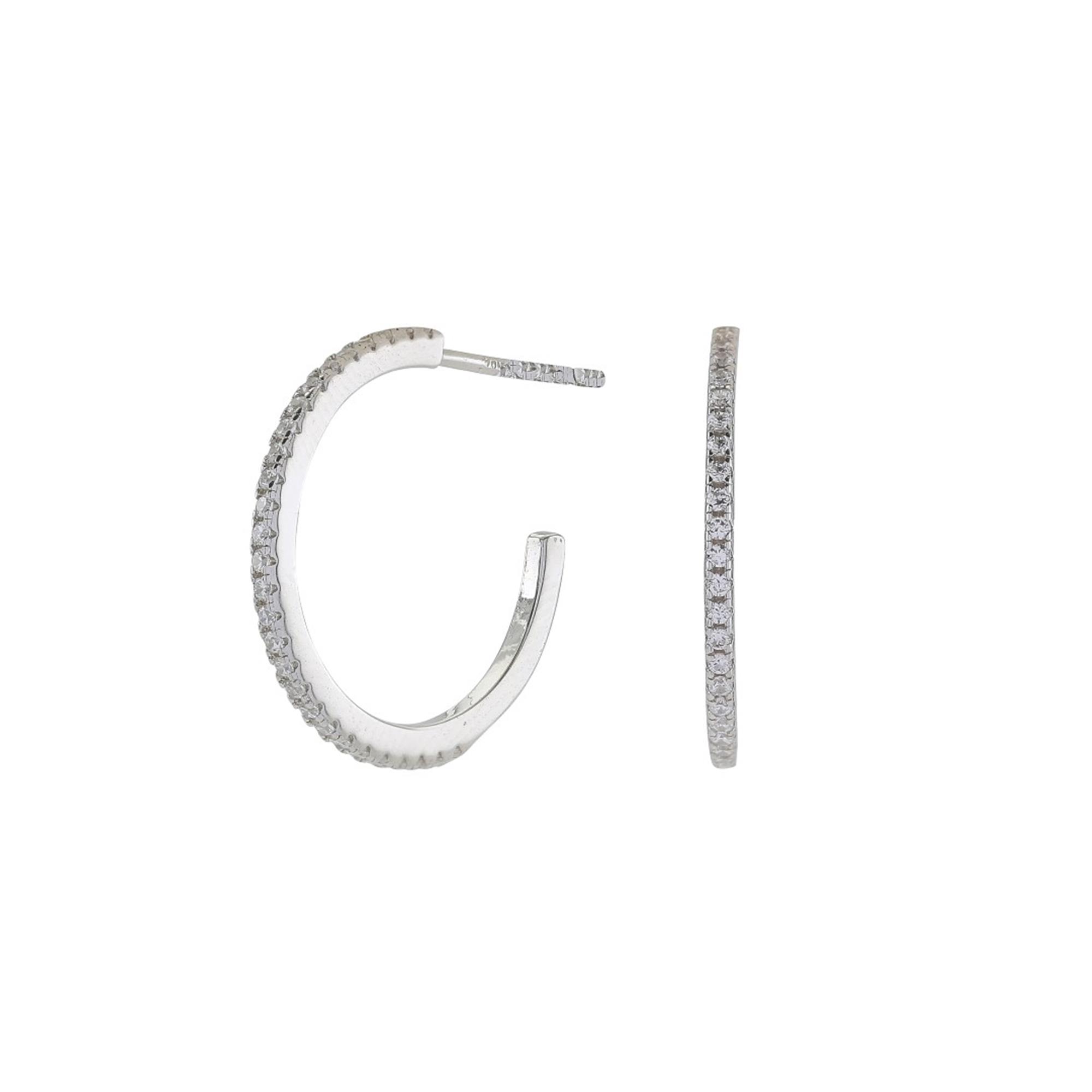Disse moderigtige creoler, fra vores Adina serie, har et særligt charmerende design. De smukke, åbne rhodineret sølvcreoler er besat med funklende zirkonia sten, som bidrager til sættets feminine udstråling. Creolerne findes i 3 størrelser – diss