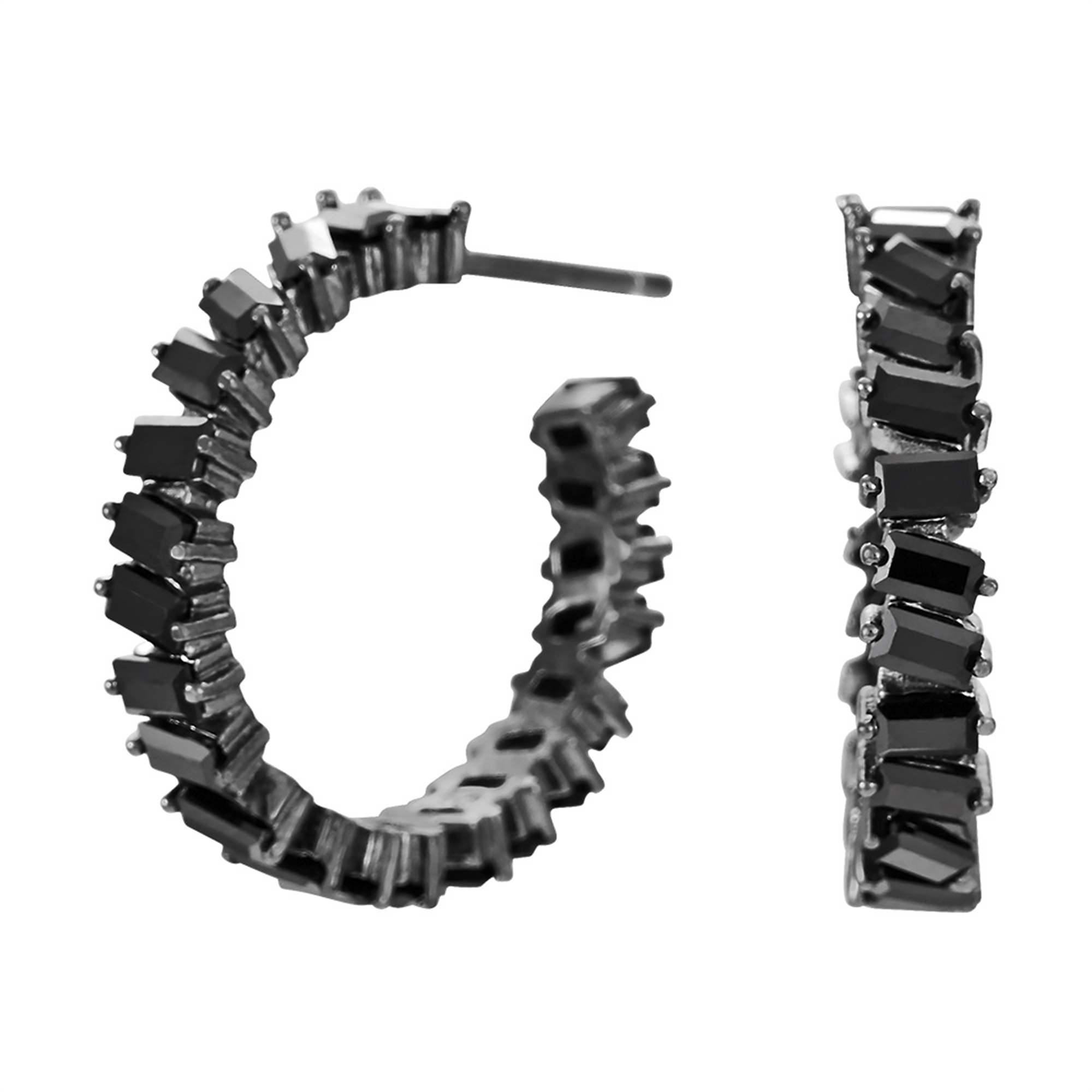 Joanli Nor\'s Sort rhd. sølv creol AGGANOR m baguette cz*