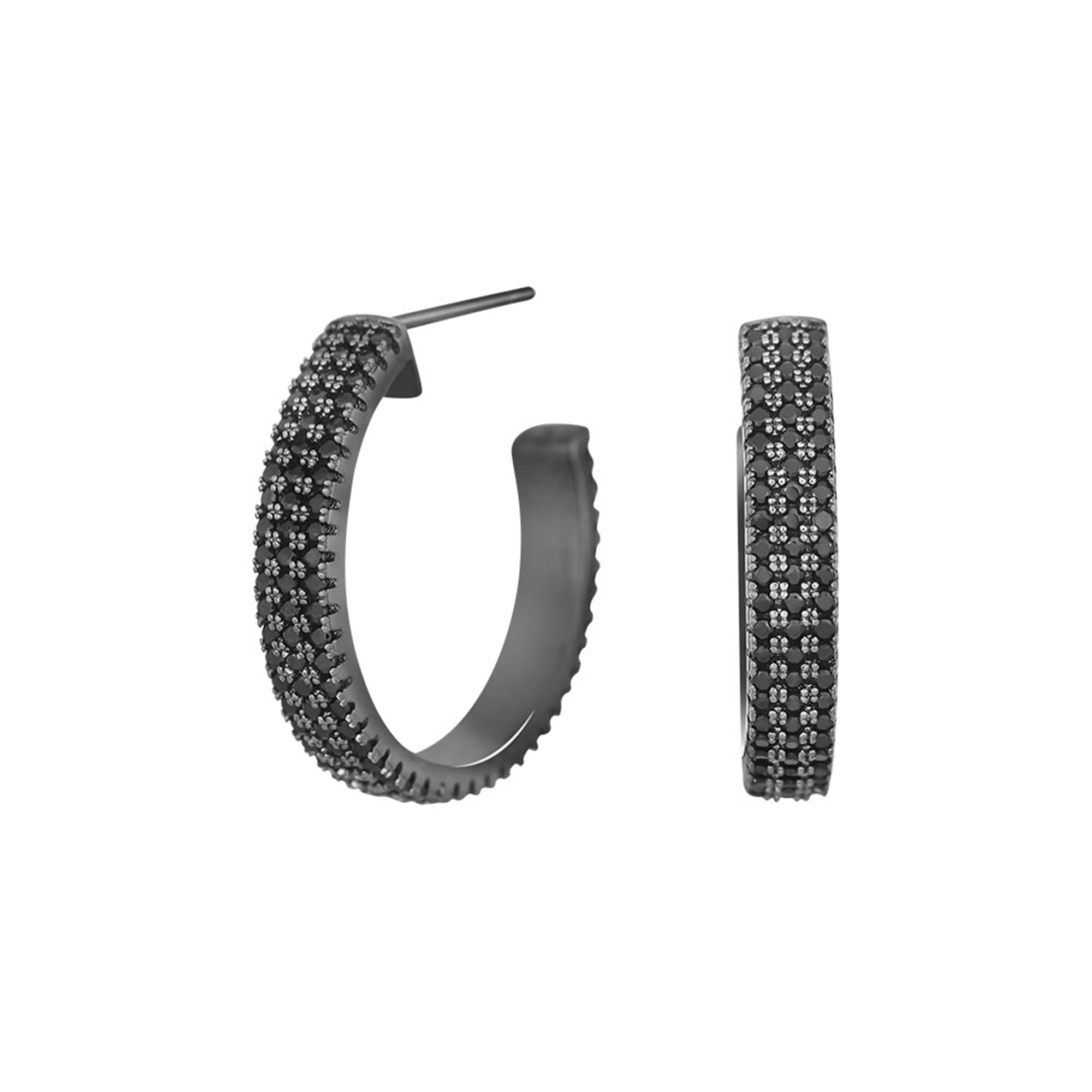 Elegante og stilsikre creoler. De smukke creoler i sort rhodineret sølv fra vores Adina Nor serie et perfekt til den modebevidste kvinde, der vil skille sig ud fra mængden. De tre rækker af funklende kubisk zirkonia tilføjer creolerne masser af glam