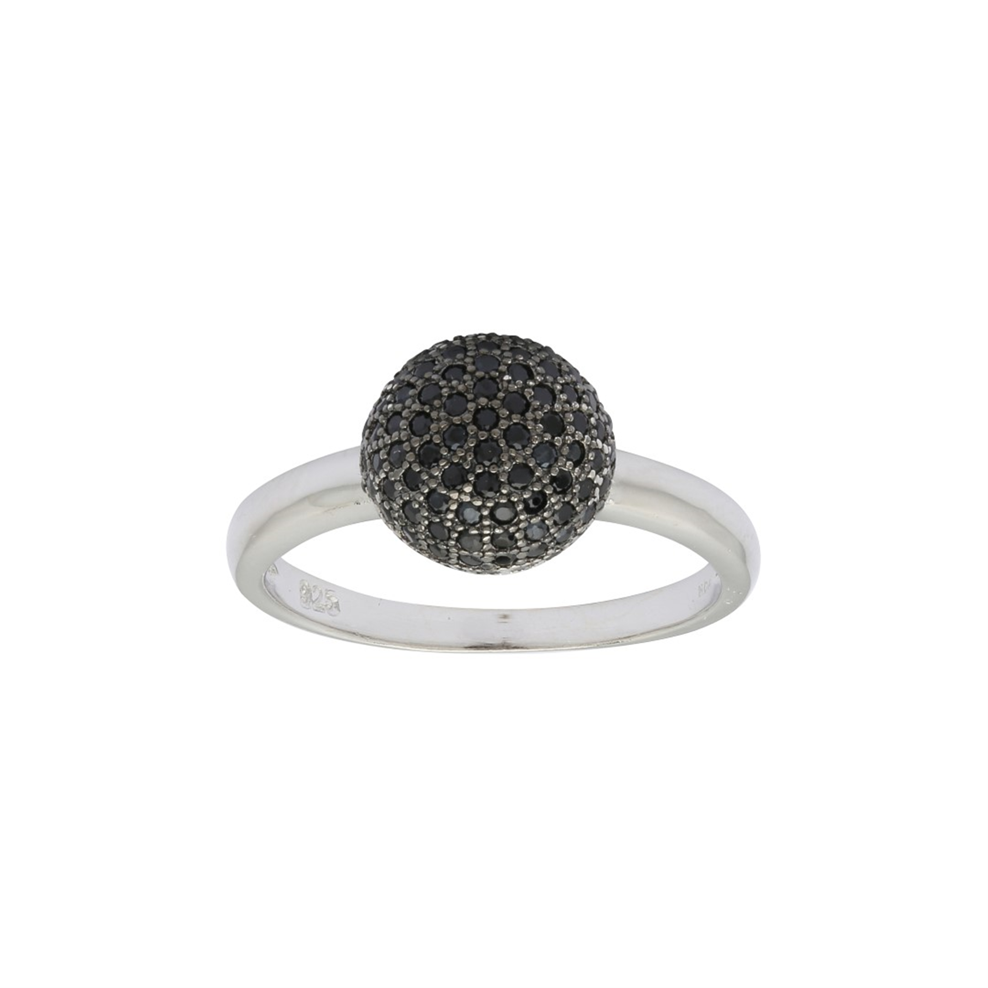 Tillad dig selv lidt hverdags eksklusivitet med denne fine ring fra vores Amola serie. Kuglen, der måler 9 mm, er besat med skinnende zirkonia sten, som smukt reflekterer lys. Den sort rhodineret sølvring har en funklende glans, uden at være for domine
