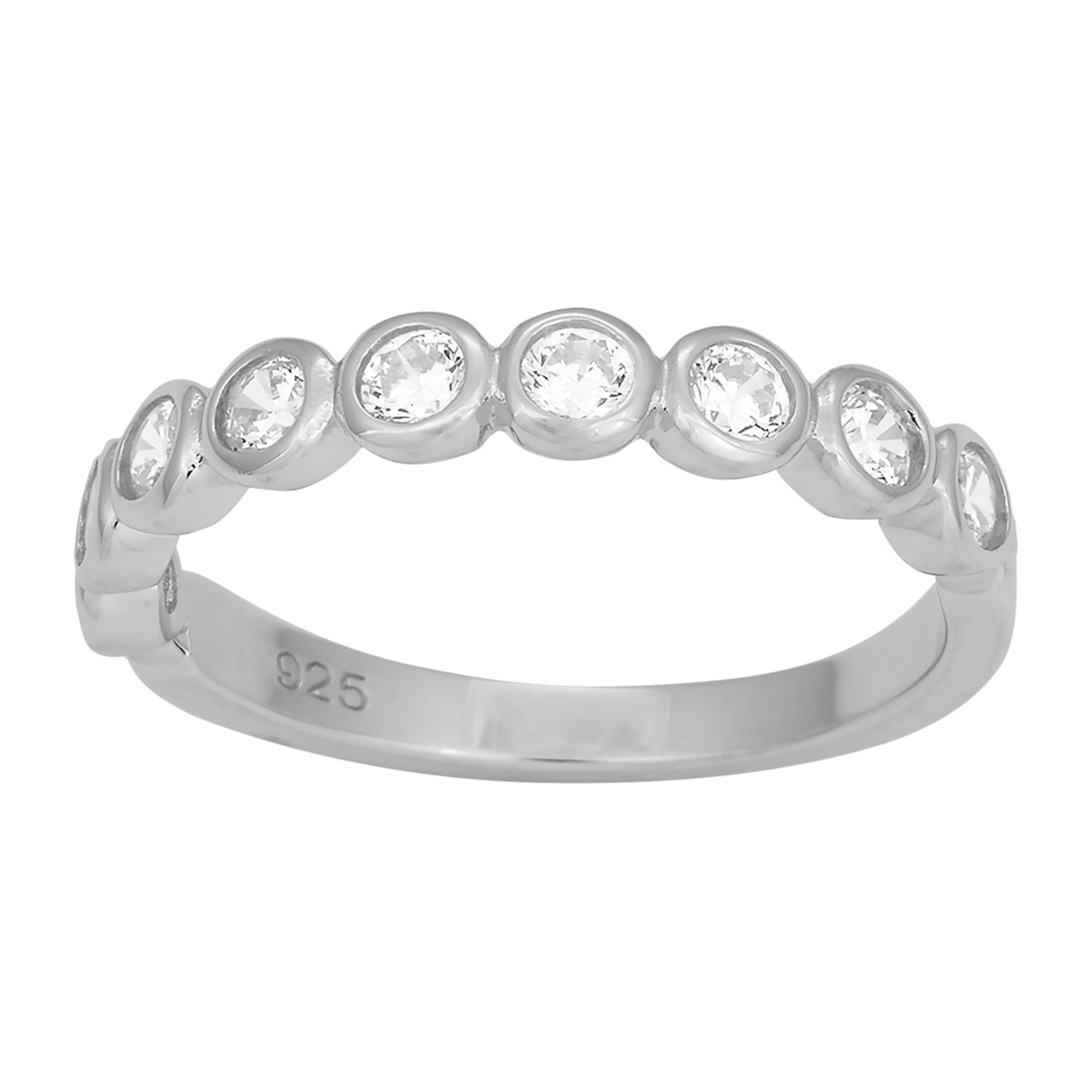Lad dig betage af denne polerede og yndefulde ring fra vores Amy serie. Ringen er sammensat af 9 smukke cirkler, besat med funklende Swarovski zirkonia sten, som giver smykket en strålende glans. Den rhodineret sølvring er henrivende og enkel, men