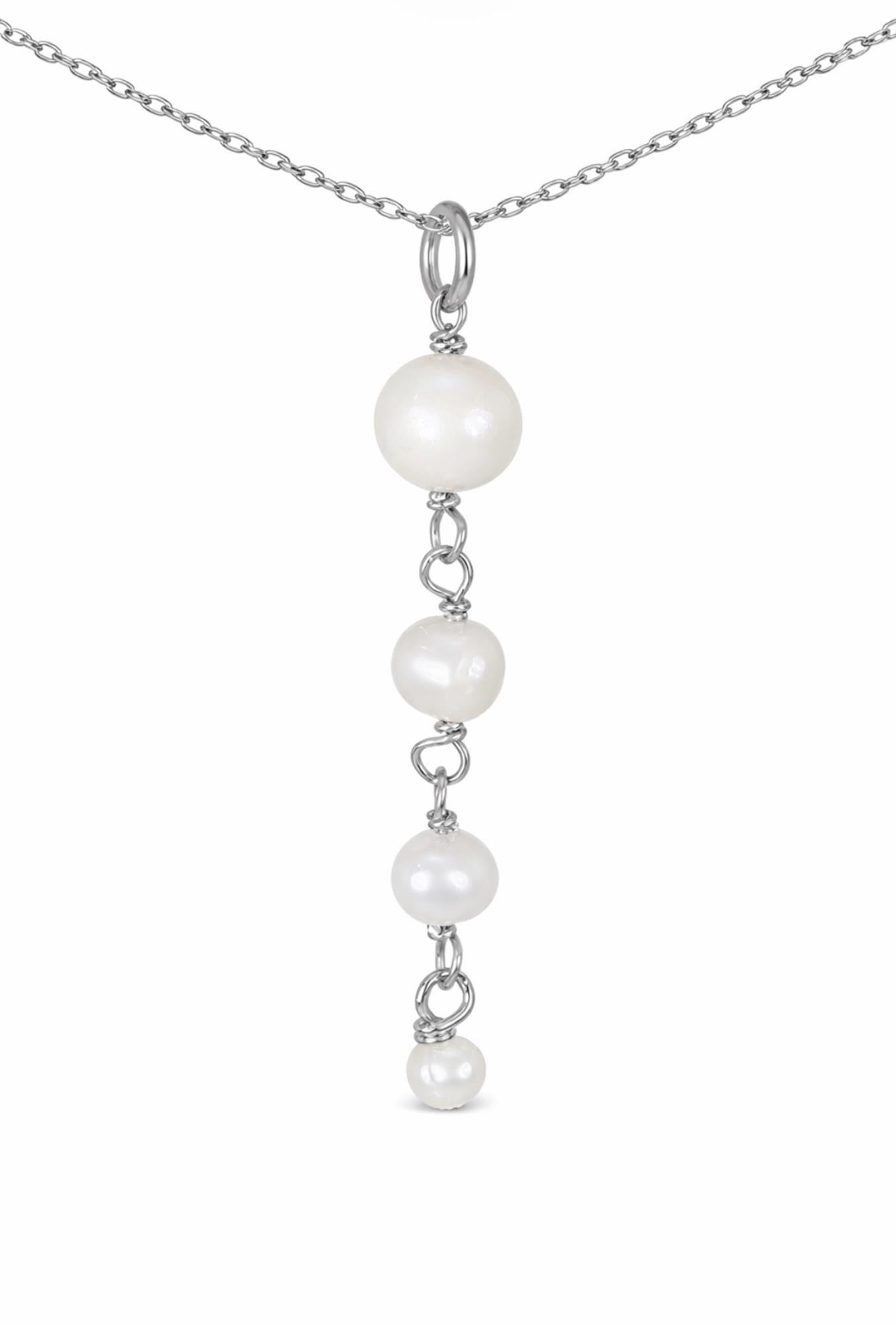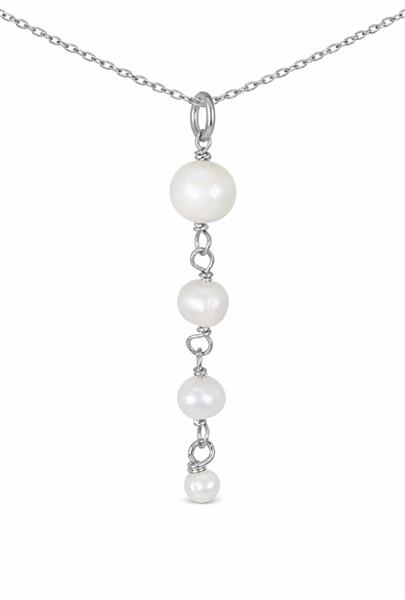 L&G\'s Y-Kæde sølv rhodineret med ferskvandsperler