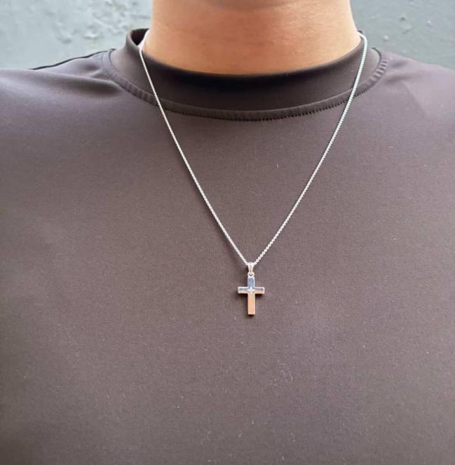 Smukt, blankt stolpekors med en lille stjerne og en diamant i midten. Det er oplagt som gave til konfirmanden eller studenten.