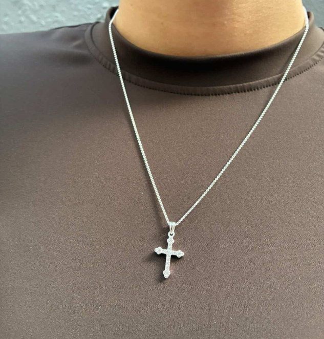 Smukt dagmarkors beklædt med glimtrende zirkoner. Det smukke kors kan med fordel kombineres med andre af Lund Copenhagen's smykker, for at kreere præcis dét look man ønsker.
