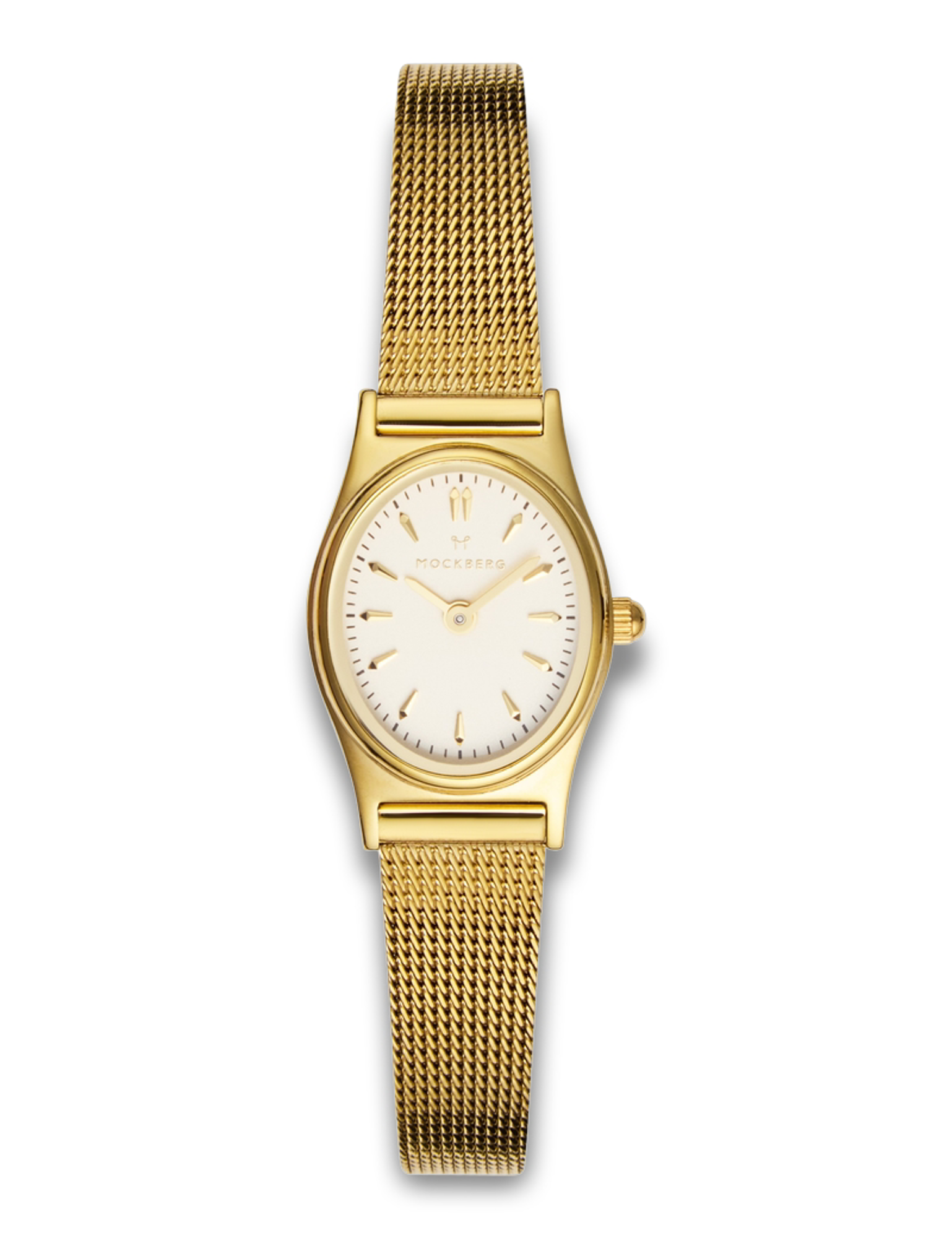 Dette MOCKBERG-ur forener luksuriøs æstetik med praktisk anvendelighed. Det guldtonede mesh-armbånd giver en behagelig oplevelse hele dagen og tilføjer et strejf af elegance til både formelle kjoler og afslappet festtøj. Den minimalistiske urskive med tydelige timeindikatorer sikrer nem aflæsning i en travl hverdag.