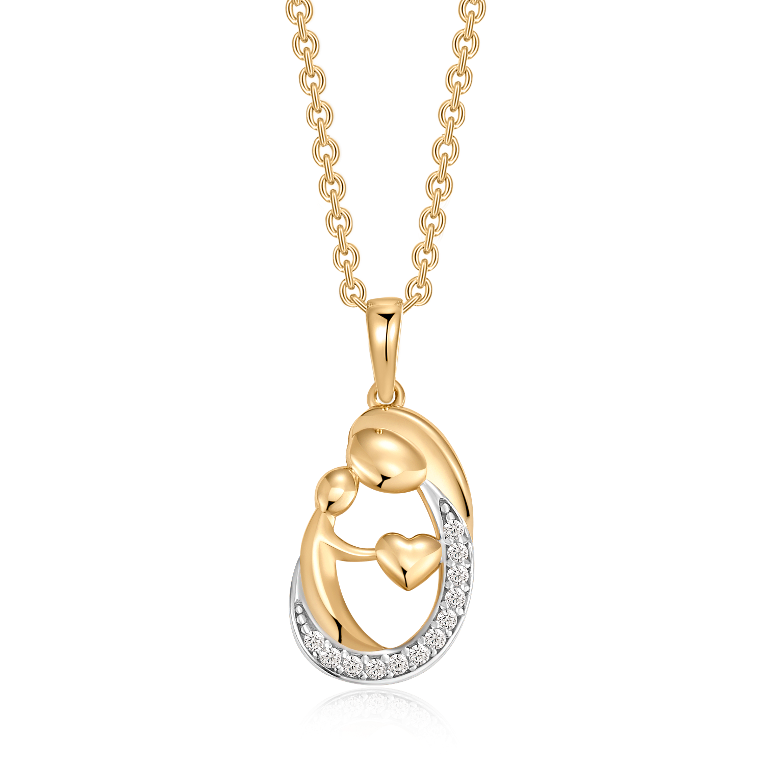 Er du på udkig efter den perfekte gave, der både rører hjertet og skinner smukt? Så er Støvring Design's Guld Halskæde lige noget for dig! Dette fine 8 kt. guld vedhæng forestiller en mor og hendes barn, indrammet af et hjerte, og er dekoreret med funklende syntetiske cubic zirconia sten, der tilføjer et touch af glamour.