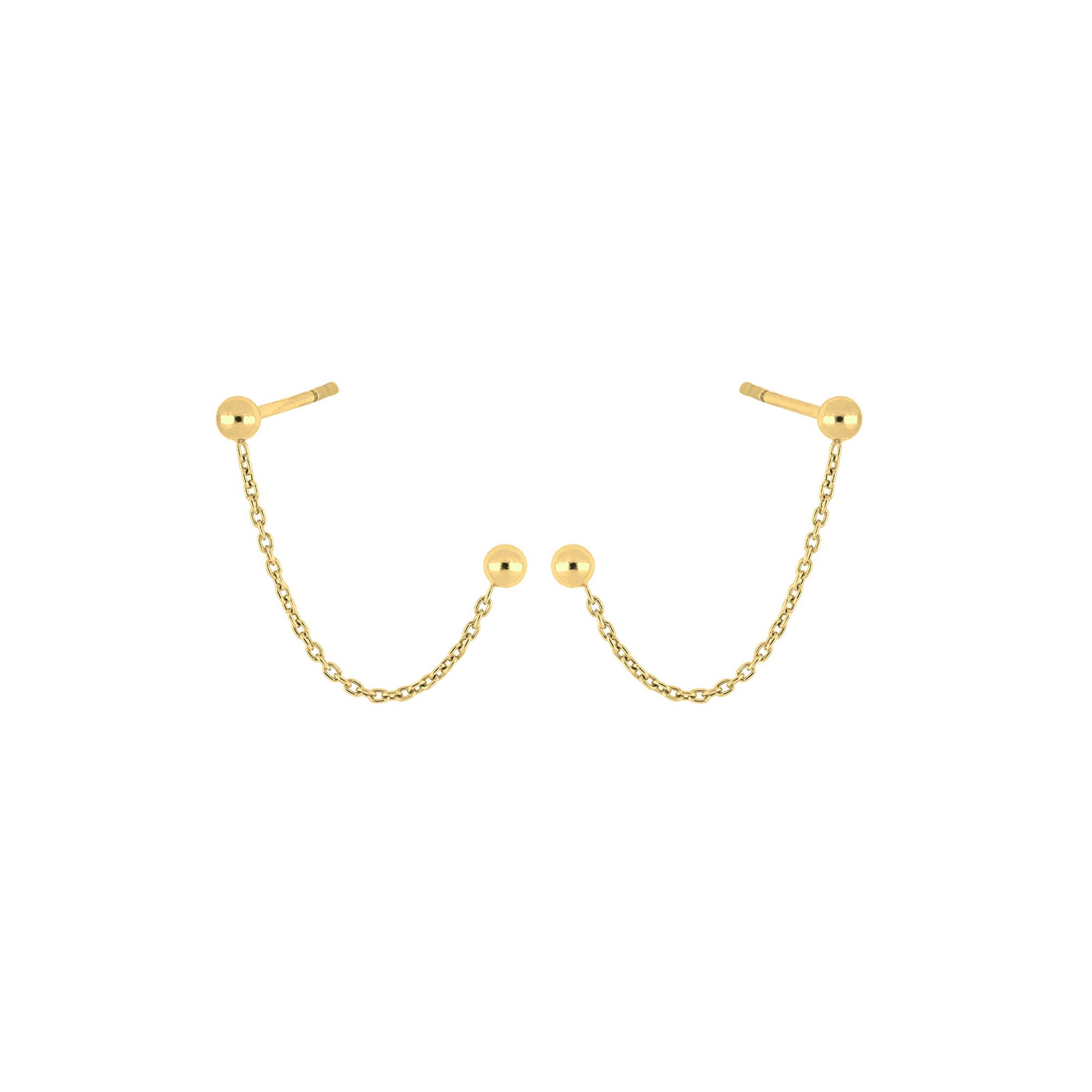 "Arial",sans-serif">Disse ørestikker i forgyldt sølv er klassiske med et lille twist. De består nemlig af to ørestikker med en kæde imelle