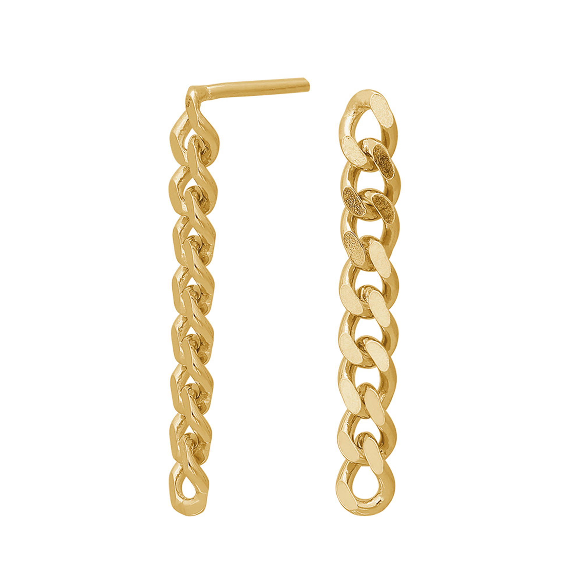 Et trendy take på den klassiske Panzer kæde! De seje ørehængere med et stykke frithængende Panzer kæde er super cool og kan både været feminin som tilbehør til ’den lille sorte’ eller rå til et par