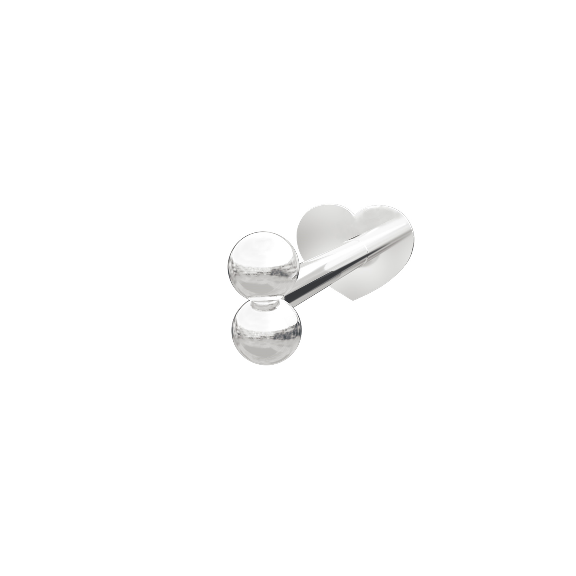 Rå labret med dobbeltkugle i rhodineret sølv, der uden tvivl vil gøre noget godt for dit øre. Diameteren på røret måler 1 mm, og længden af labretten måler 6 mm.