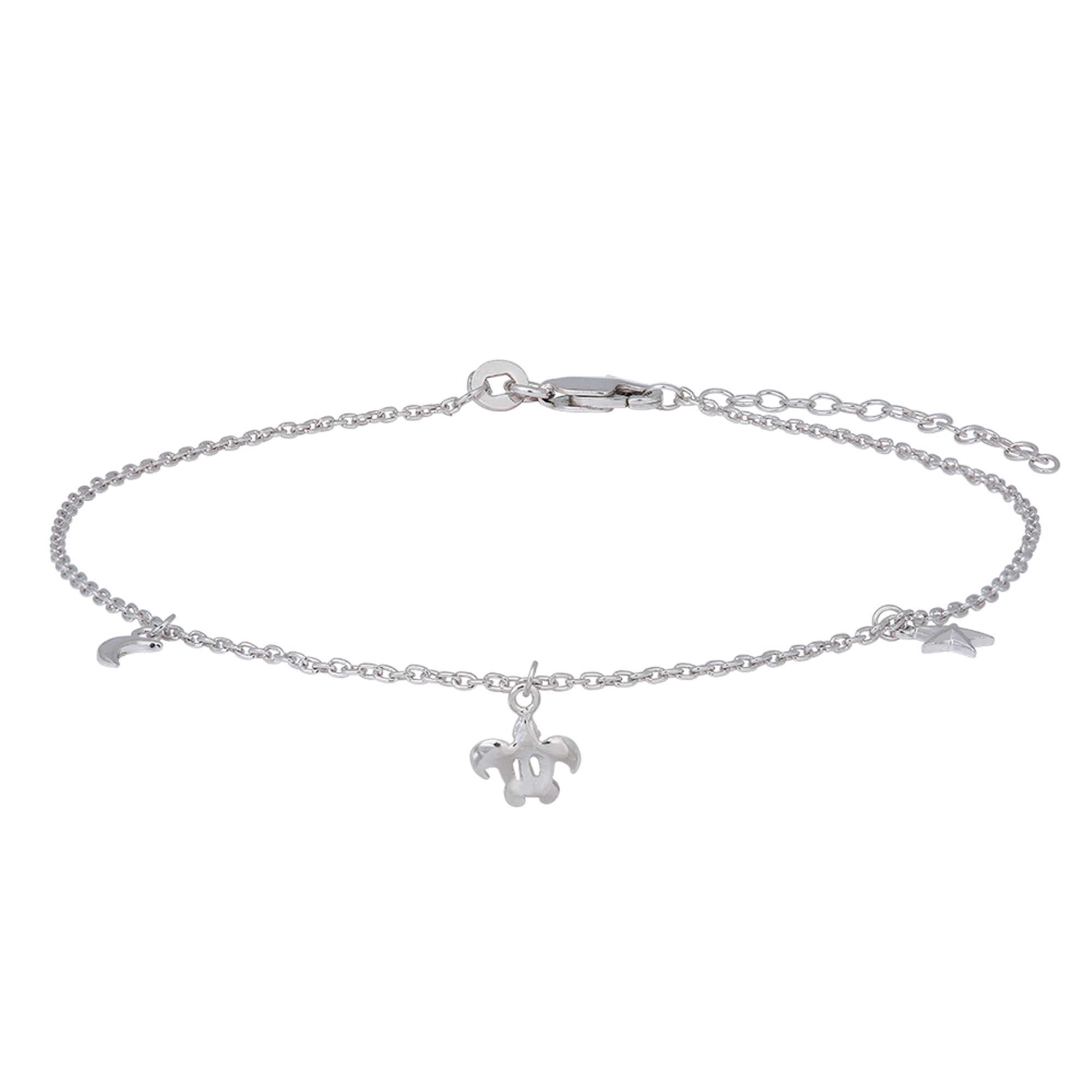 Ankelkæde i sterlingsølv fra vores BEACH52-serie. En sød og legende ankelkæde med fine, små vedhæng. Vedhængene viser en halv måne, en havskildpadde og en stjerne. Ankelkæden måler 27 cm. Materiale: Sølv