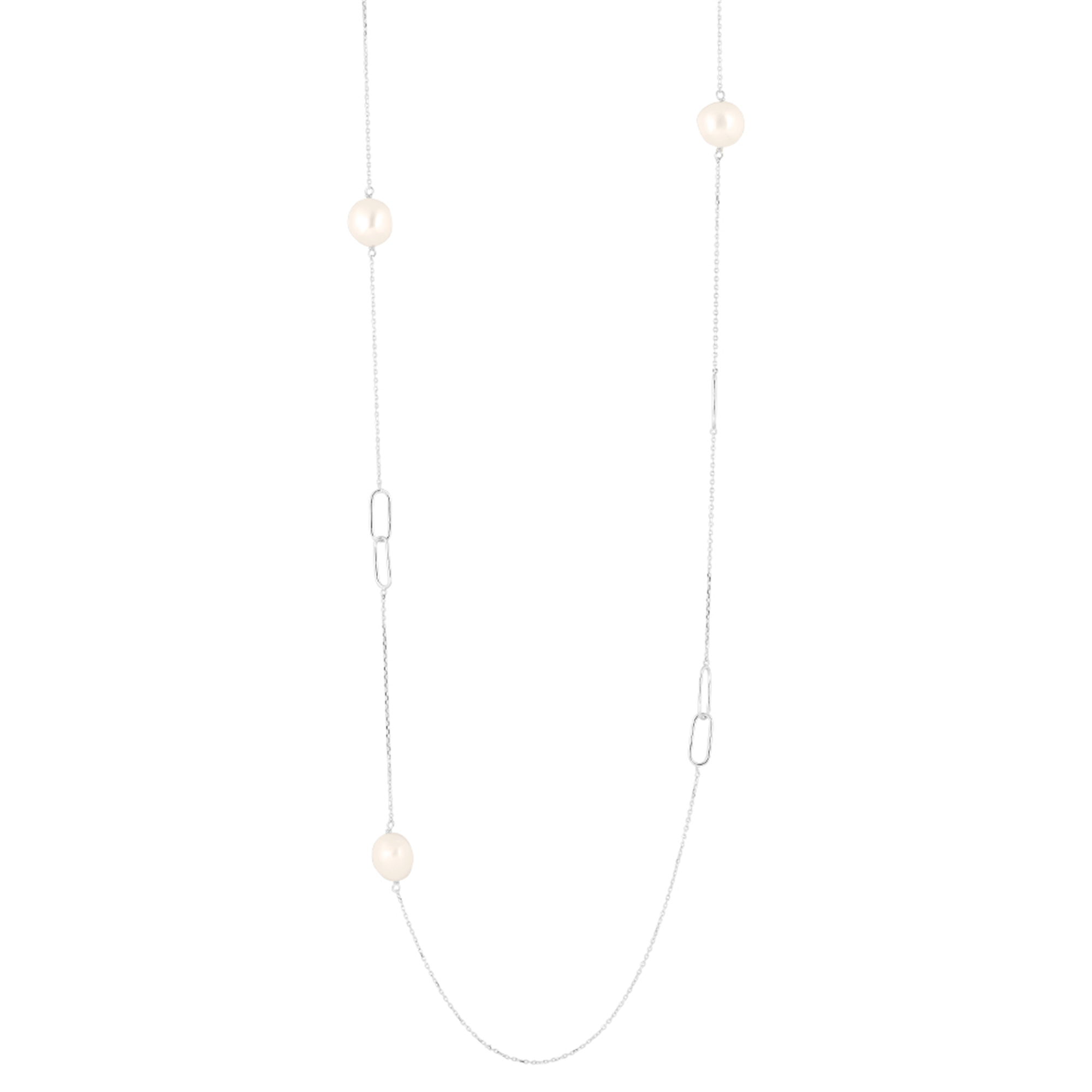 Nordahl's Rhd. sølvkæde BAROQUE52 led + ferskv.perle 95cm