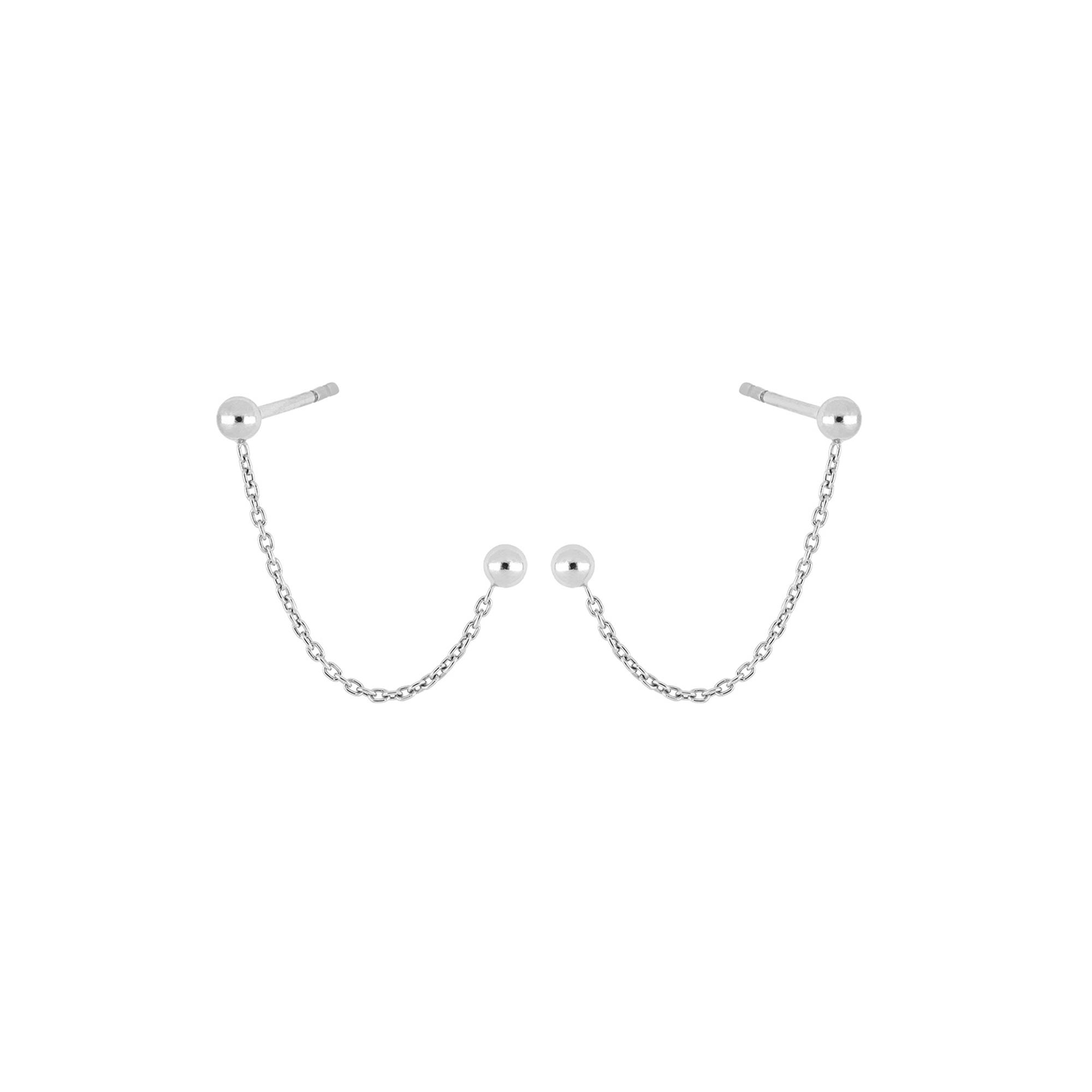 "Arial",sans-serif">Disse ørestikker i rhodineret sølv er klassiske med et lille twist. De består nemlig af to ørestikker med en kæde imel