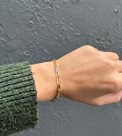 Ocean 2, 14 karat 2 farvet guld armbånd, 4,2 mm - 18½ cm