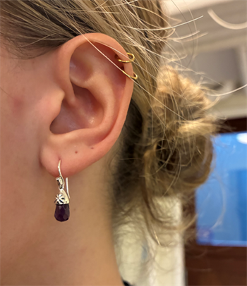 Det tidløse danske design sikrer, at ørehængerne passer til forskellige daglige aktiviteter uden at virke overdrevne. Den dristige lilla farve kan fungere som en samtalestarter og tilføje et strejf af mystik, ideel til både afslappede cafébesøg og romantiske stunder.