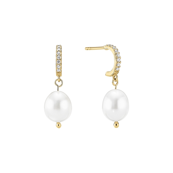 Ørestik med ferskvandsperle 8-8,5mm og zirkonia forgyldt sterling sølv fra Lund Copenhagen