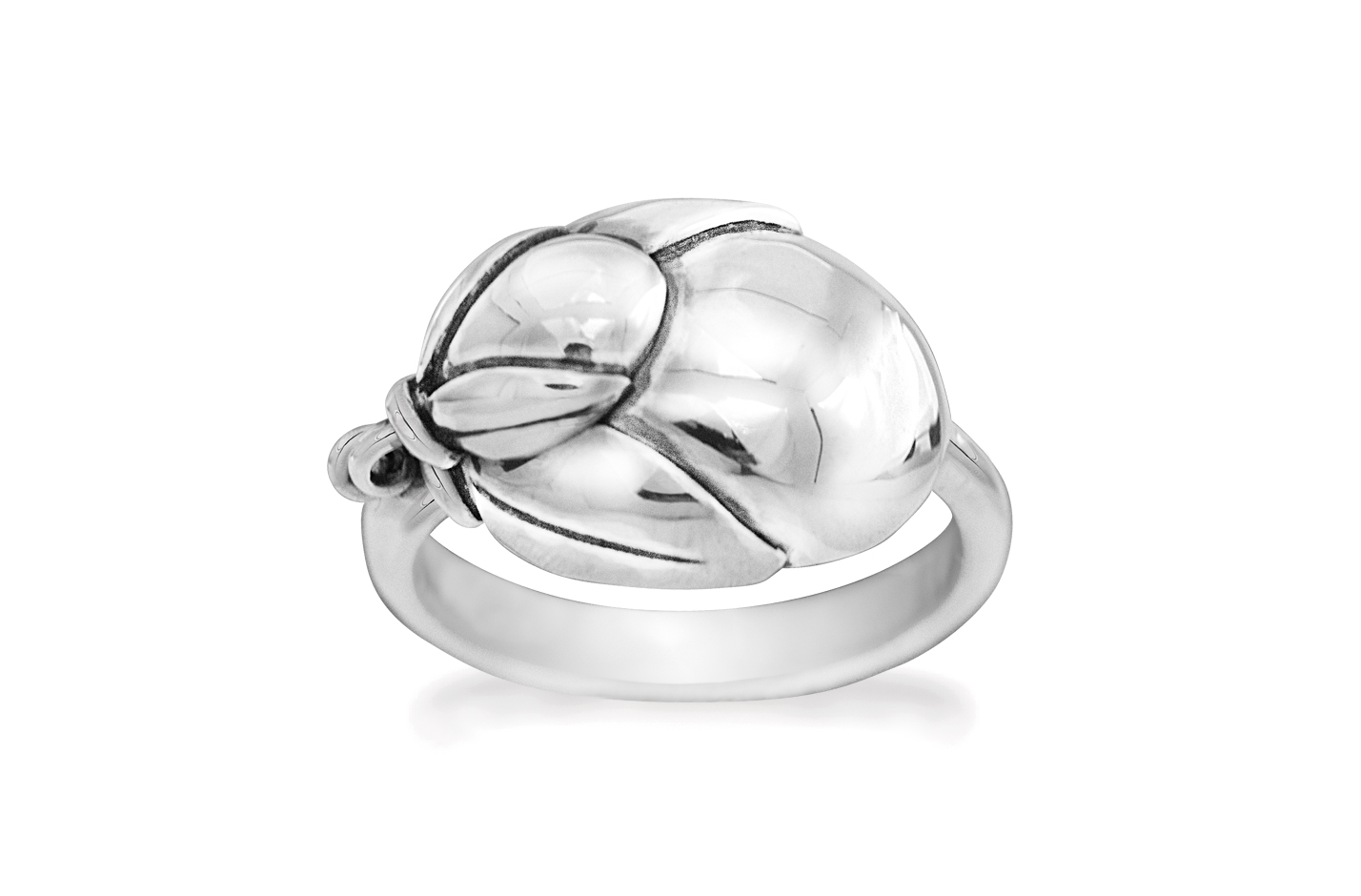 I hjertet af Rabinovichs kollektion finder du Flower Bud-ringen, hvor sterlingsølvets skinnende overflade møder naturens poetiske former. Det unikke blomsterknop-design udfolder sig i glatte, organiske linjer, der fanger og reflekterer lyset med en særlig elegance, ideel til både hverdagens stilfulde øjeblikke og særlige anledninger.
