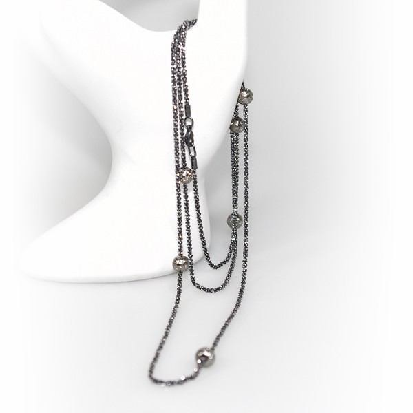 Diamond Cut kædedesign - som lang kæde med Magic Beads, der har en silikonekerne - således at du kan rykke dem tættere eller længere fra hinanden.Udført i Oxyderet Sterlingsølv der er skåret med diamanter, således at kæderne glinser utroligt flot - og ligner Spinel., fra San - Links of Joy