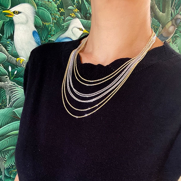 San - Links of Joy\'s  Armbånd & Halskæde - 8 rækket m.Multifunktioner-Rhodineret/forgyldt 17cm
