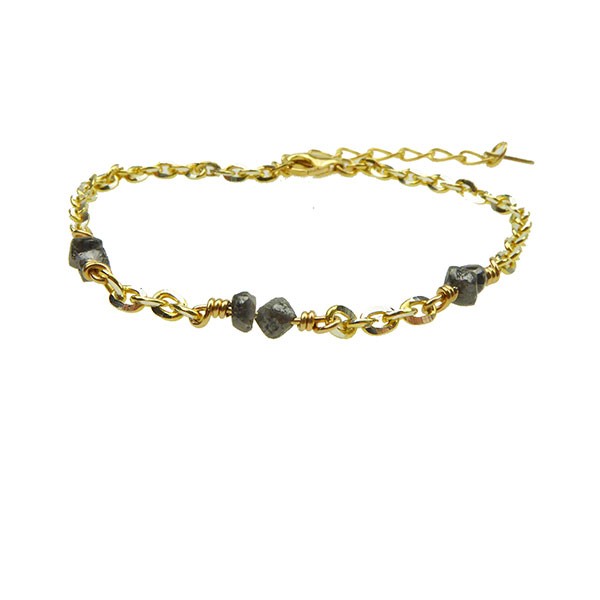 San - Links of Joy's Bracelet & Necklace - Goldplated w. Antracit Raw Diamonds 16+4cm
