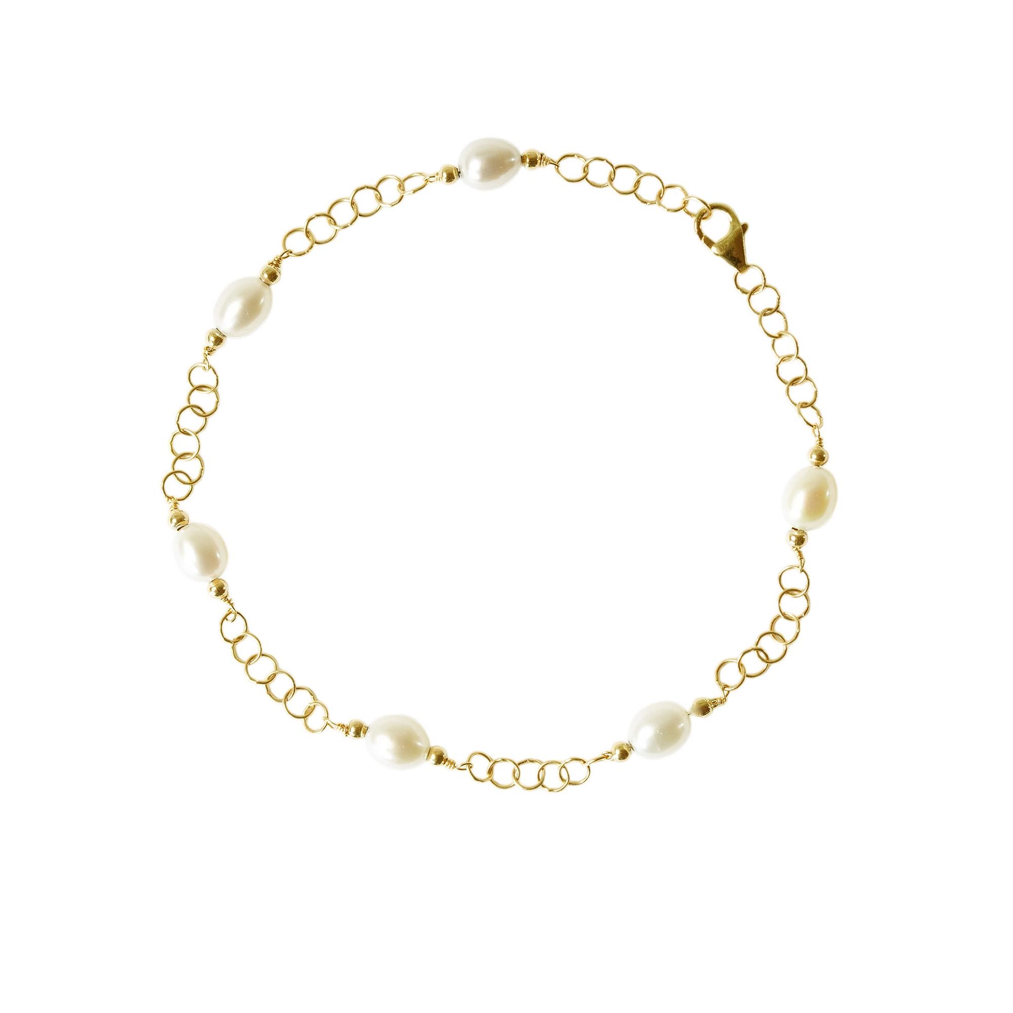 9 Karat Armbånd & halskæde med Runde Øskner og Hvide Ferskvandsperler – Let, Elegant og Justerbart Dette delikate og alsidige armbånd & halskæde i 9 karat massivt guld er opbygget af runde øskner med en bredde på 3 mm, hvilket giver det et let, moderne og luftigt udtryk. Det er et smykke, der kombinerer klassisk elegance med funktionalitet – og som med sit rene, åbne design passer perfekt til både hverdagsbrug og festlige lejligheder. Kædent er smykket med flere hvide ferskvandsperler, der er fordelt harmonisk langs kæden. Hver perle er omsluttet af små, fine guldkugler, som fremhæver perlernes silkebløde glans og giver kæden et ekstra strejf af raffineret detalje. Perlerne tilfører kæden blødhed og bevægelse og skaber en smuk kontrast til de geometriske øskner. Et særligt kendetegn ved dette design er den funktionelle karabinlås, som let kan fæstnes i et hvilket som helst af de runde led. Det betyder, at armbånd & halskæde nemt kan justeres i længden, så det passer præcist – uden behov for ekstra led eller forlængere. ✔️ 9 karat massivt guld ✔️ Runde øskner – 3 mm i bredde ✔️ Hvide ferskvandsperler, hver omgivet af guldkugler ✔️ Elegant og luftigt udtryk ✔️ Justerbar længde via karabinlås ✔️ Håndlavet i Danmark ✔️ Ideelt til gave eller personligt brug ✔️ Leveres i smykkeæske Et smykke med lethed, finesse og funktion i perfekt balance – skabt til dig, der værdsætter både skønhed og fleksibilitet. , fra San - Links of Joy