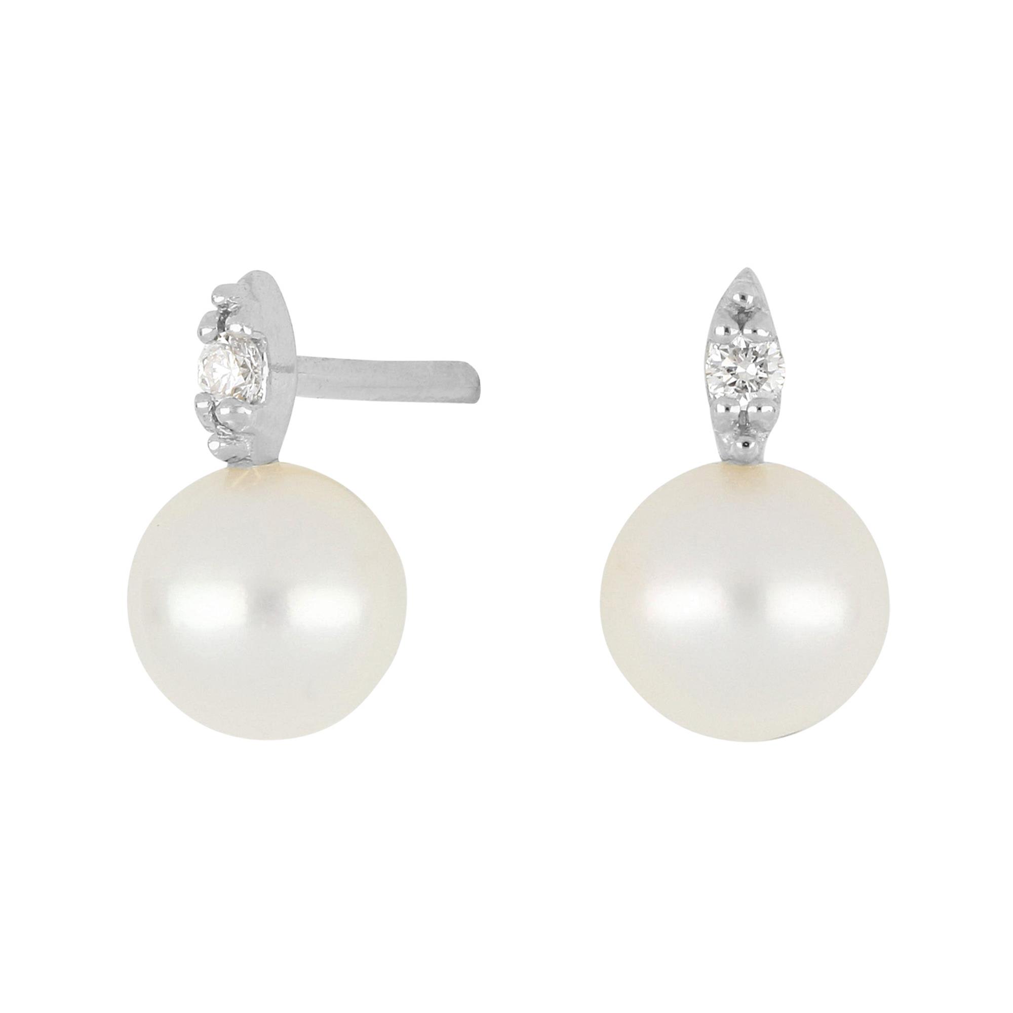 Siersbøl's 14 kt. hvidgulds ørestikker m/perle og dia. 0.044ct W/SI