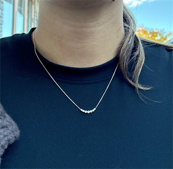 En håndlavet halskæde fra Siersbøl, hvor zirkoniastenene sidder smukt beskyttet i rørfatninger. Den tynde kæde i 8 karat guld giver dig et smykke, der passer til både hverdag og fest.