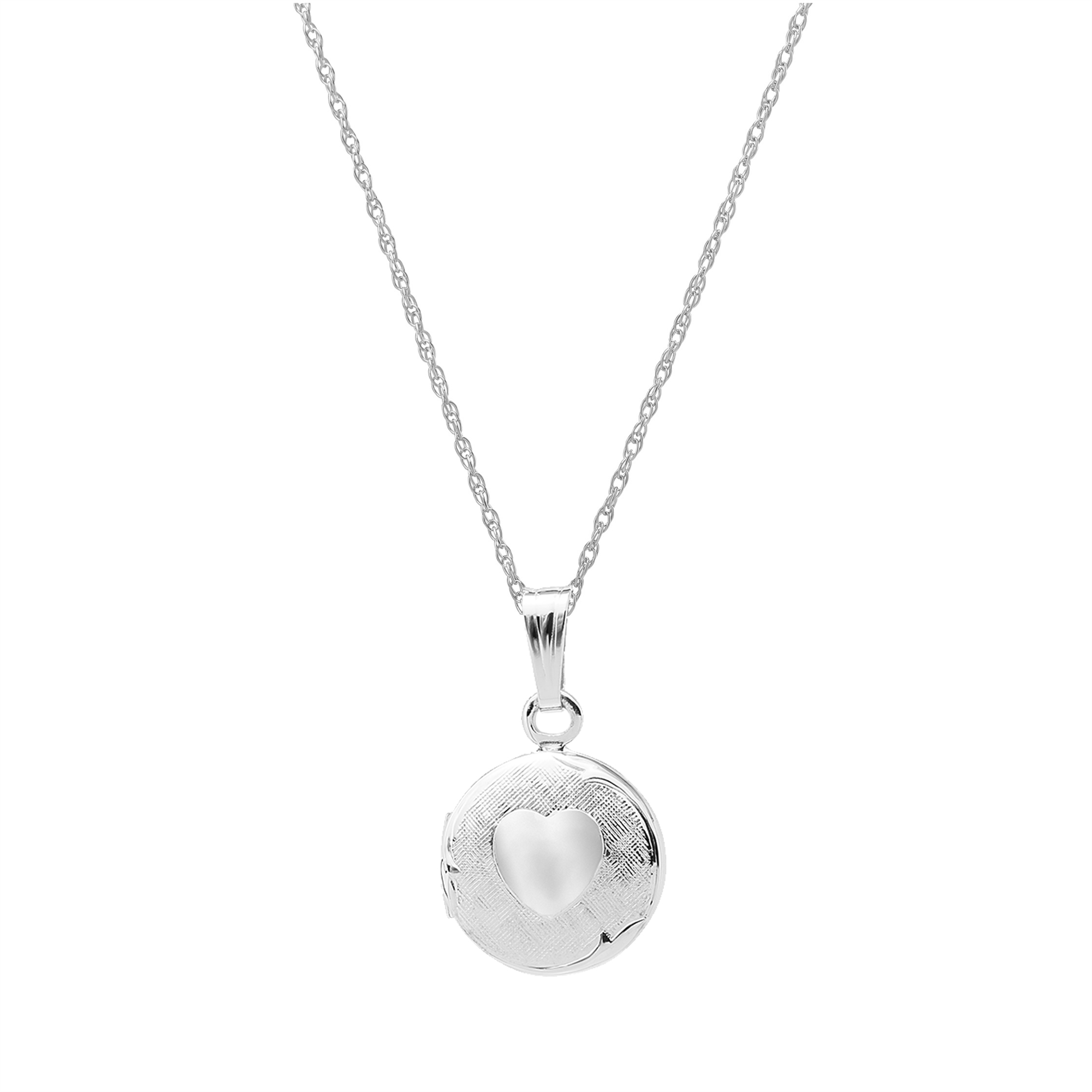 Eventyrlig og romantisk rund medaljon i rhodineret sølv. Medaljonens forside er prydet med et sødt ciseleret hjerte, mens bagsiden er blank. Medaljonen er ikke ment til billeder, men der kan lægges noget ind i hulrummet. Vedhænget måler 10 m
