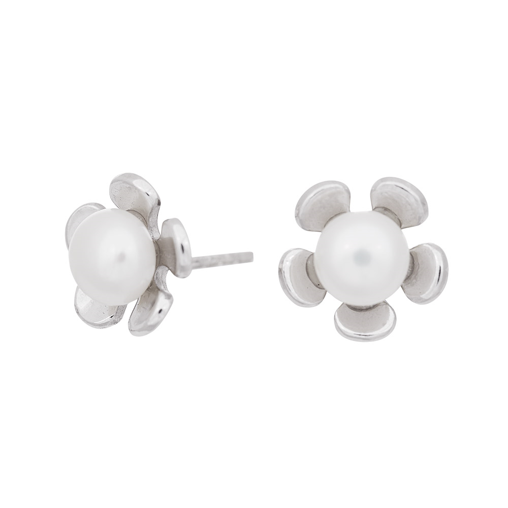 Siersbøl\'s rhodineret sølv ørestikker blomst m/ perle