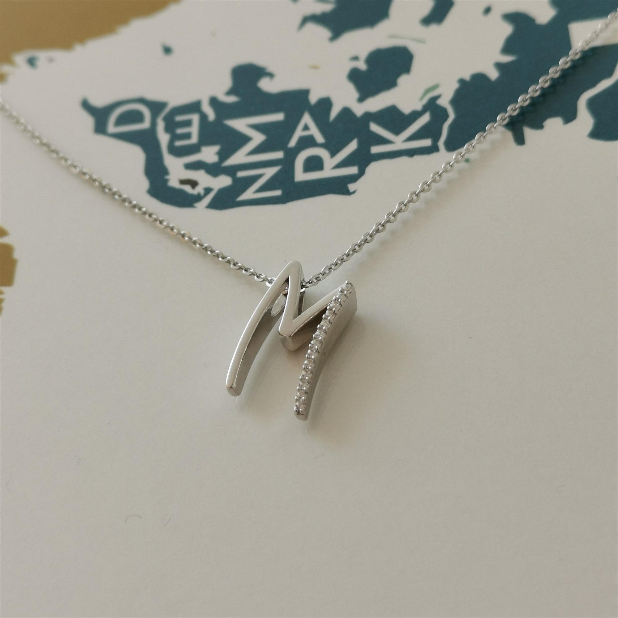 16 mm mat forgyldte sølv bogstaver Design Letters by Arne Jacobsen uden eller med 45-60 cm kæde
