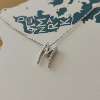 Sølv bogstaver i sterling sølv med zirkonia - 15 mm vedhæng i skråskrift - A-Z