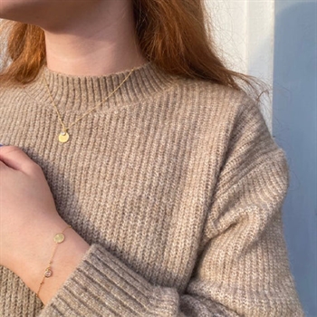 Smukt armbånd med mønt med solmønster og lille løs zirkonia i elegant fatning fra Aagard. Armbåndet er fremstillet i sølv, belagt med 18 kt guld.
