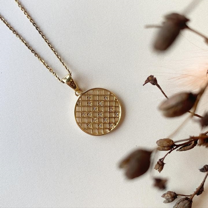 sterling sølv HARLEKIN fra Kranz & Ziegler med Smukt vedhæng i forgyldt sølv med net mønster og glimtende zirkonia