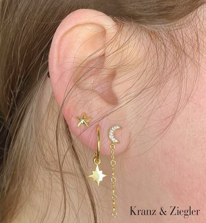 Øreringene har et feminint og dragende design, som er udsmykket med måne, stjerner og fine zirkoner.