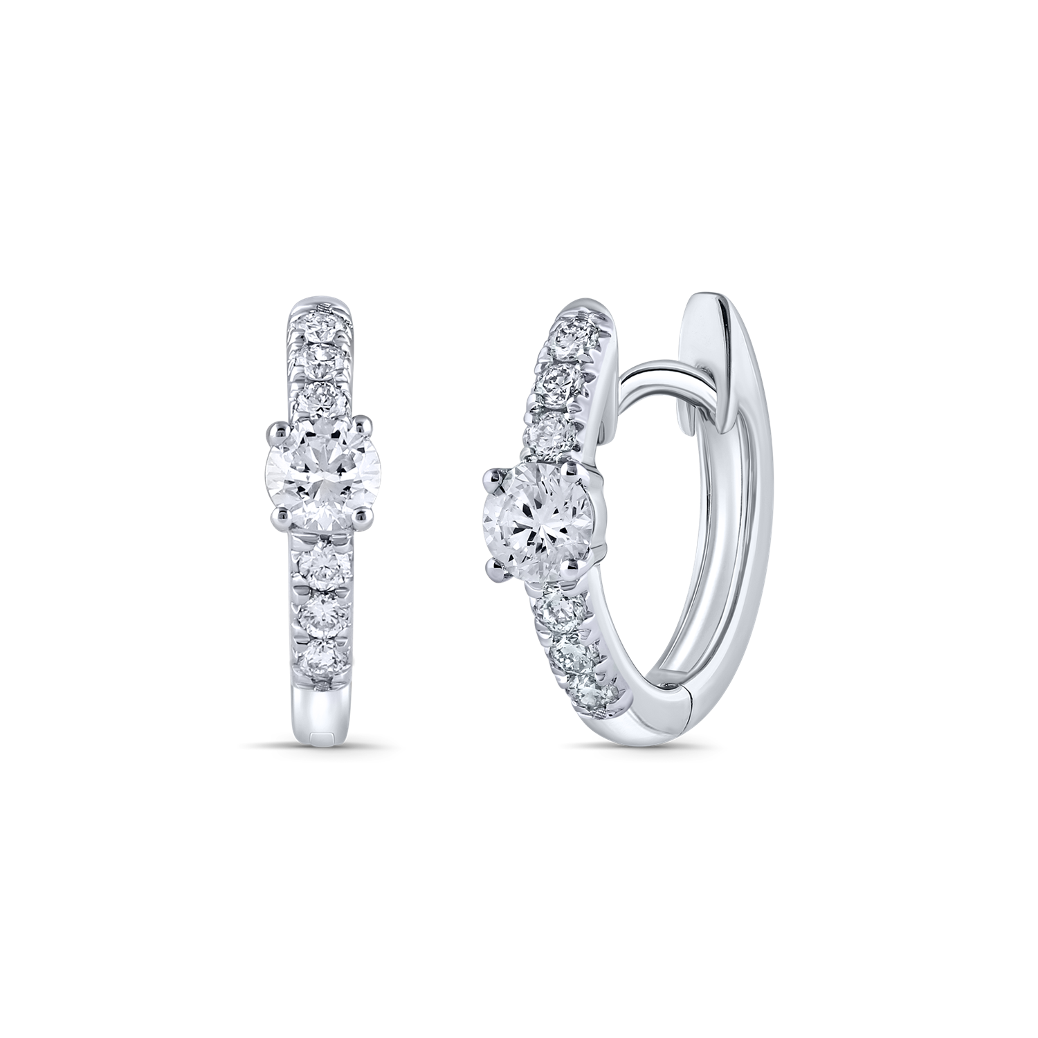14 kt. hvidguld creoler 1 stor og 6 små brillanter. 3 små brillanter på hver siden af den store.