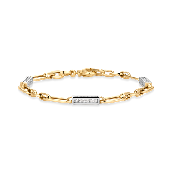 8 kt. guld armbånd oval led med aflang firkant rør med syntetiske cubic zirconia.