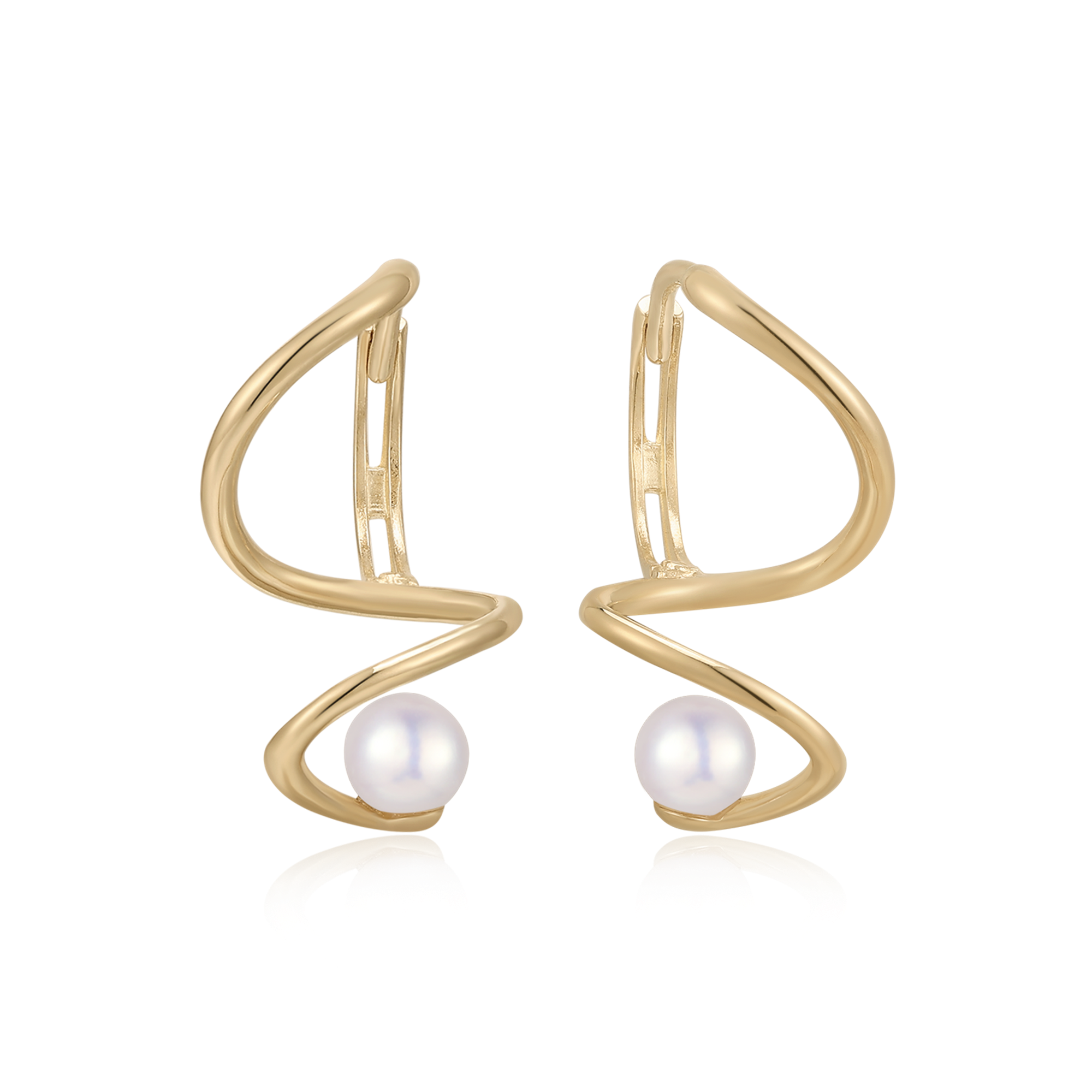 Det unikke spiralformede design fanger øjet med sin dynamiske form, hvor guldets varme glans møder perlens naturlige skønhed. Ørestikkerne er fremstillet i 8 kt guld, der sikrer både holdbarhed og et luksuriøst udseende, ideelt til hverdagens elegante øjeblikke.