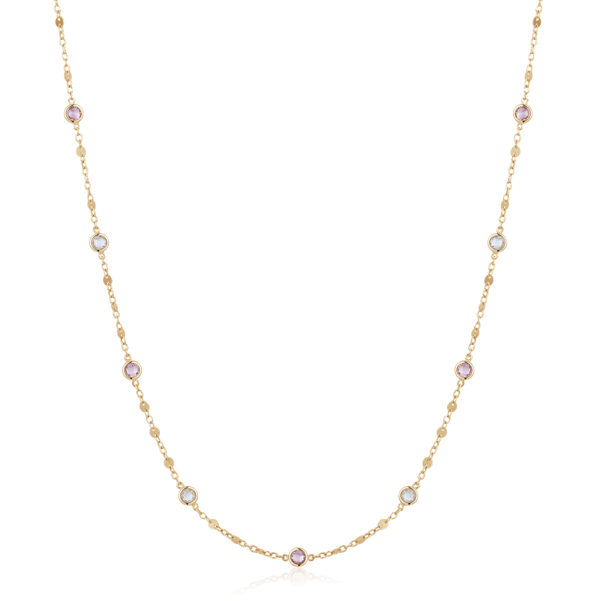8 kt. guld collier cirkel med ametyst og blå topas