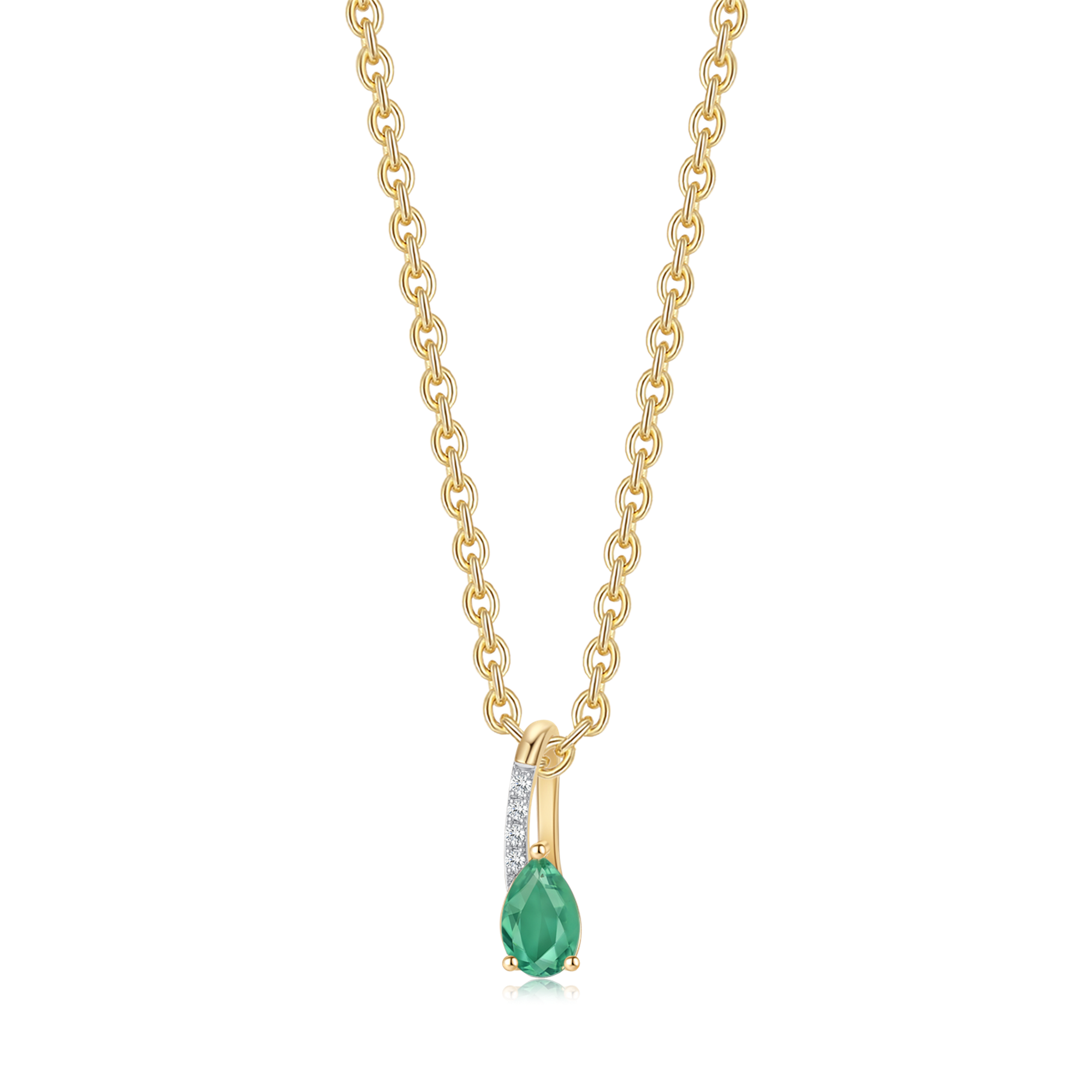 8 kt. guld vedhæng dråbe med smaragd og syntetiske cubic zirconia.
