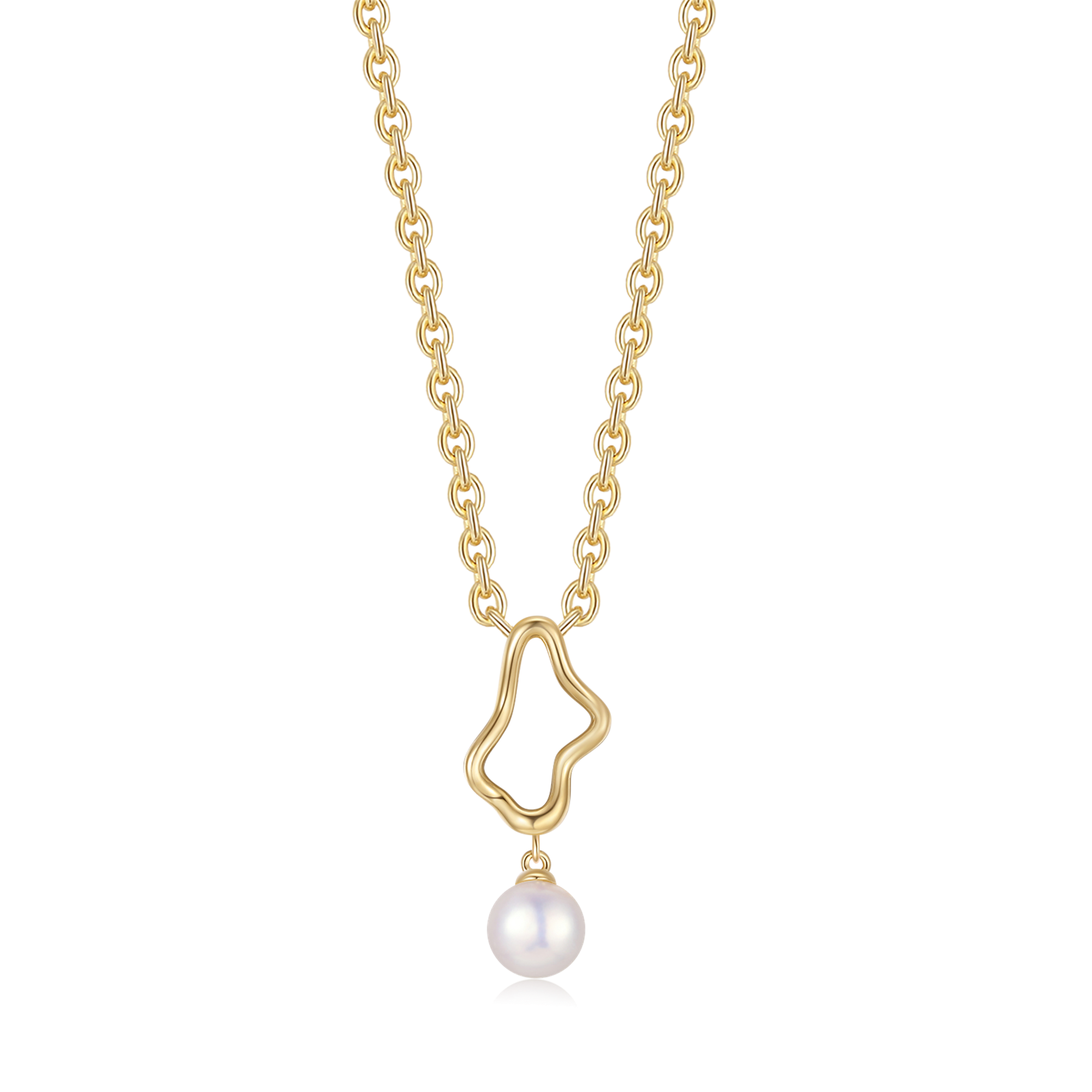 8 kt. guld vedhæng skæv oval med ferskvandsperle.