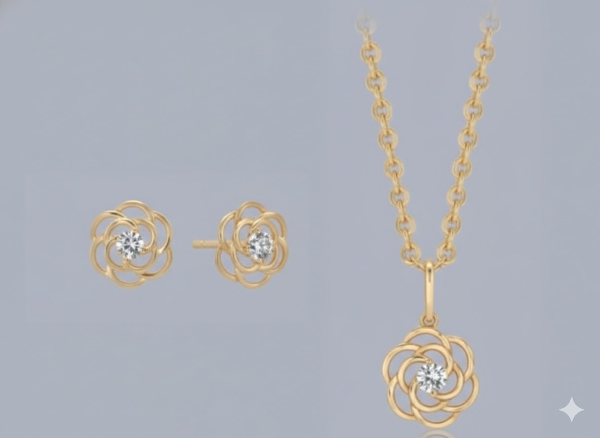 8 kt. guld vedhæng blomst med syntetiske cubic zirconia.