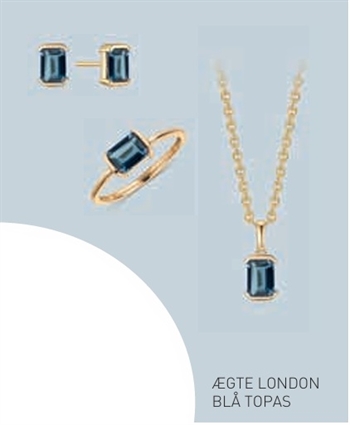 14 kt. guld ørestikker aflang firkant med london blå topas.