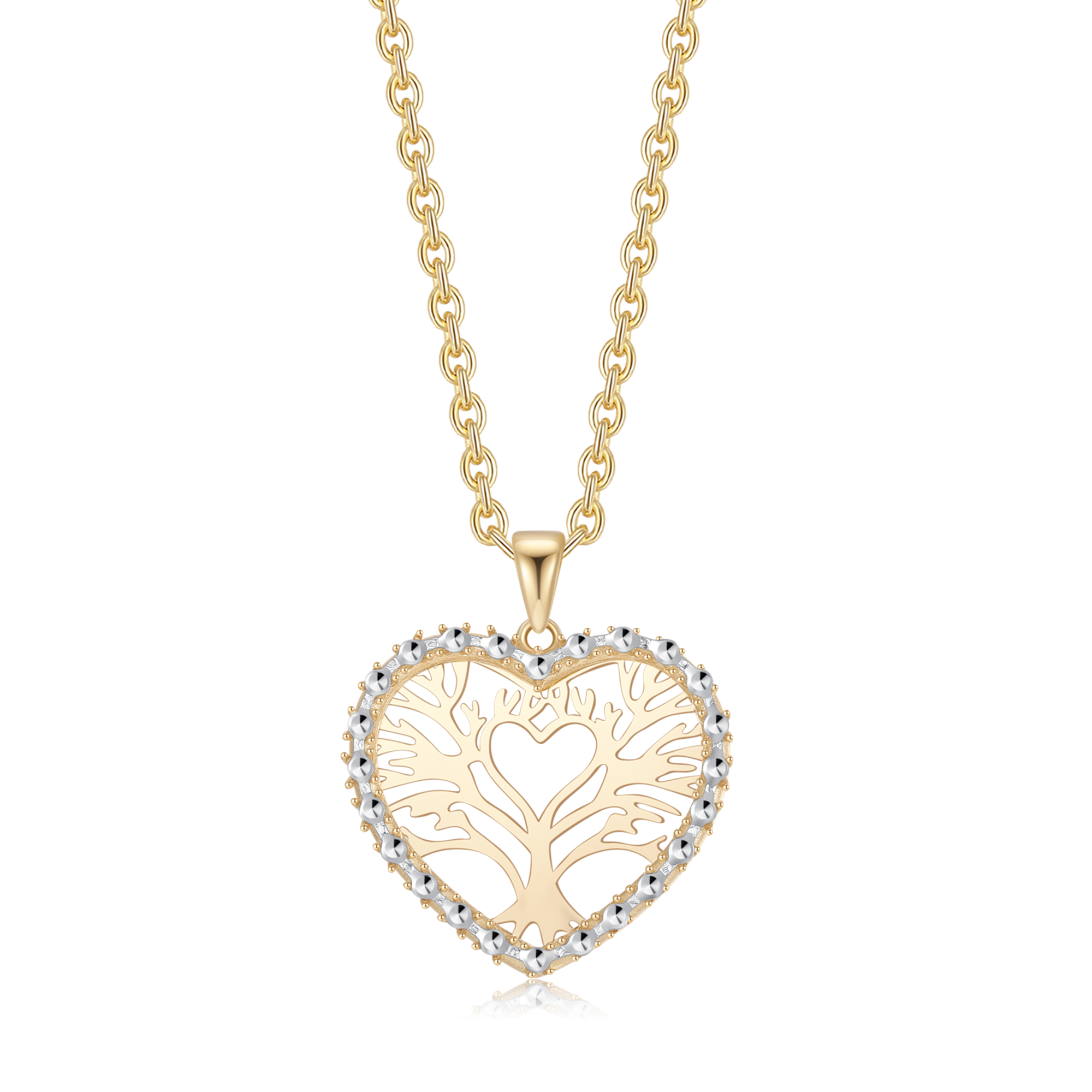 14 kt. guld vedhæng hjerte med livets træ med lille hjerte i midten og syntetiske cubic zirconia i kant.