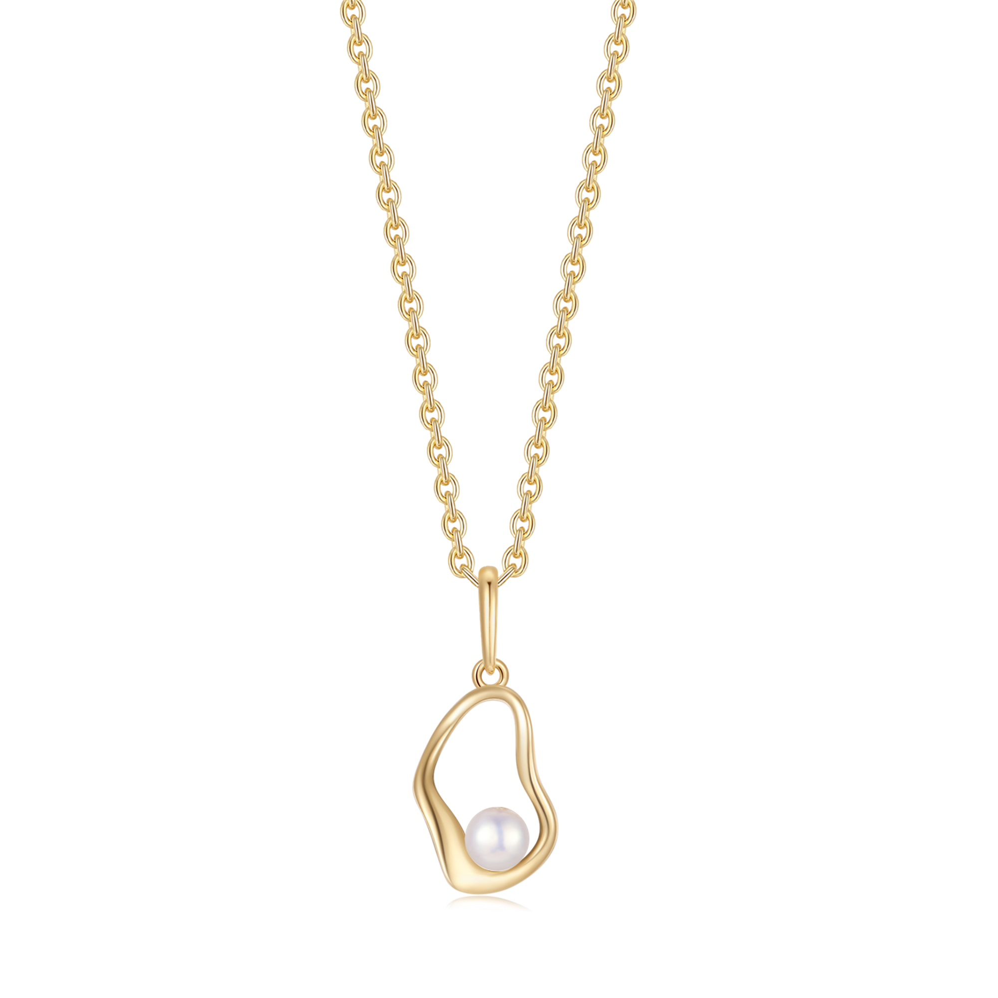 14 kt. guld vedhæng skæv oval med ferskvandsperle.