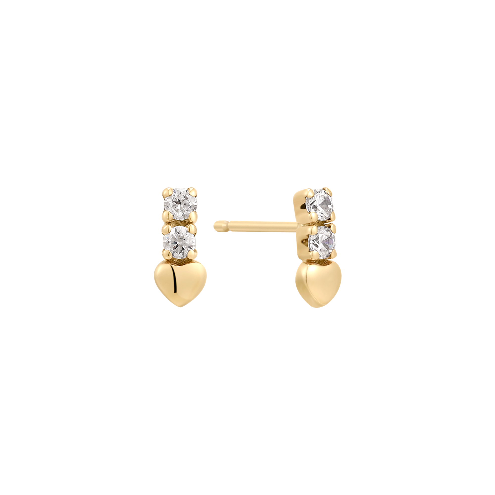 8 kt. guld ørestikker 2 syntetiske cubic zirconia i 4 grabber med fyldt hjerte i bunden.