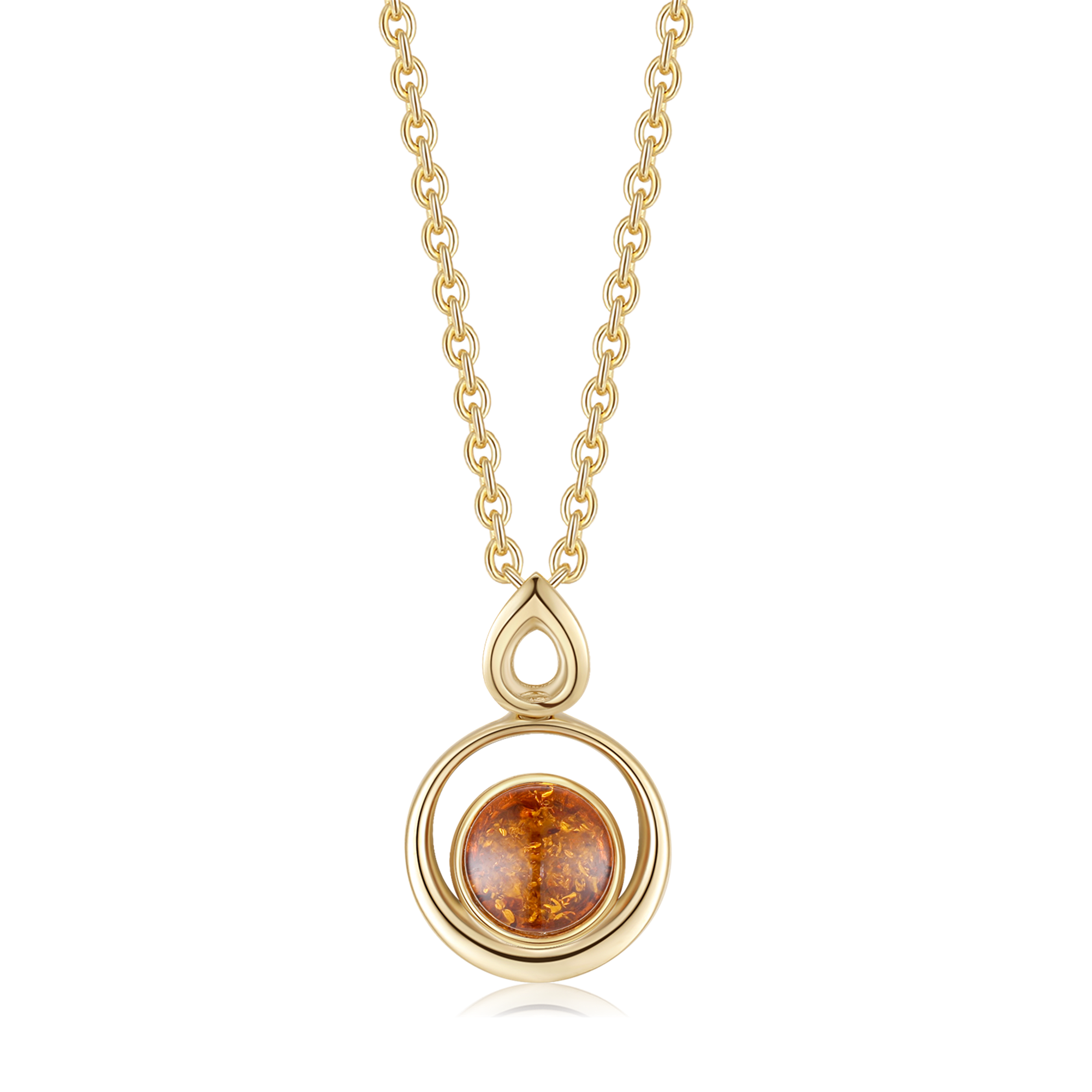 9 kt. guld halskæde rav i ring med ring omkring. , fra Støvring Design