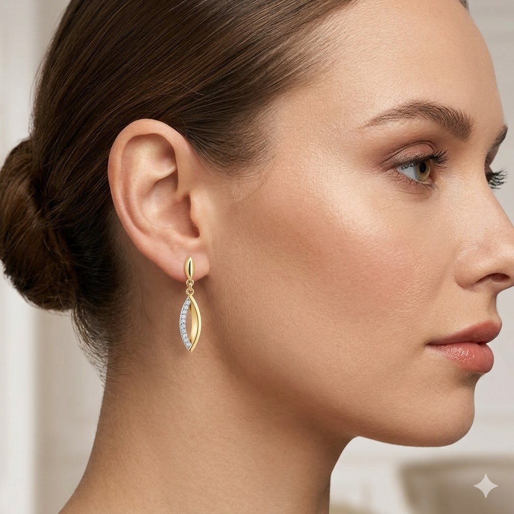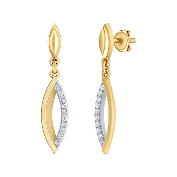 14 kt. guld ørehænger oval øje med brillanter i den ene side.