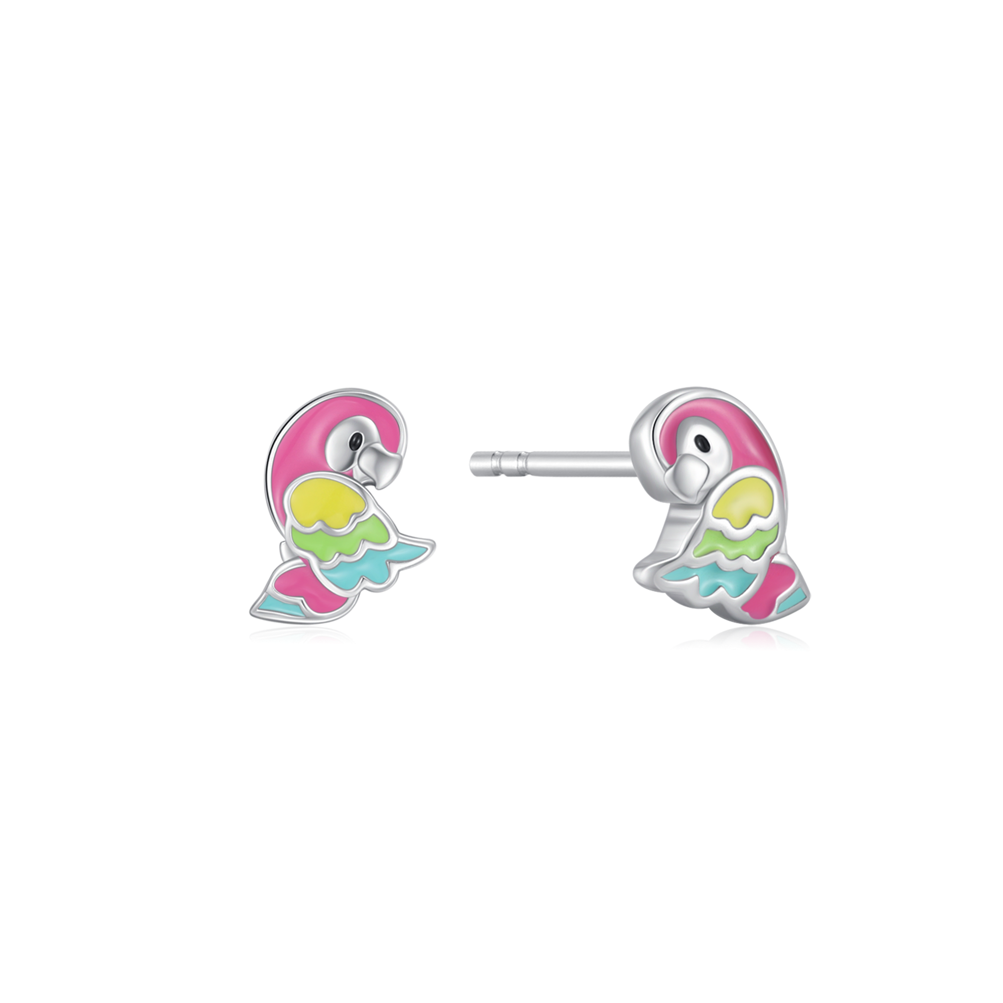 Sølv ørestikker rhodineret papegøjer i multi blyfri emalje.