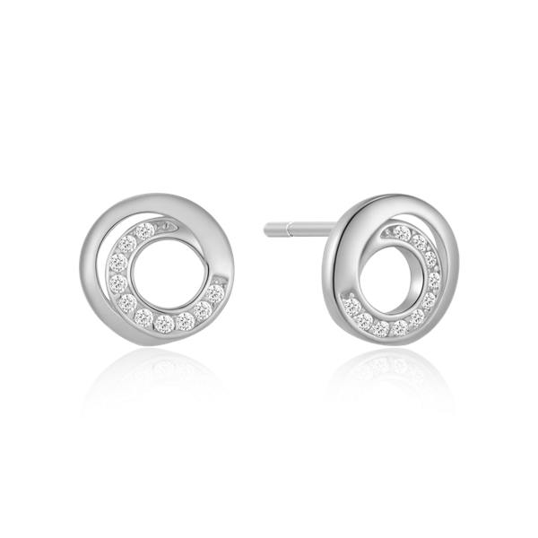 Sølv ørestikker rhodineret cirkel med syntetiske cubic zirconia