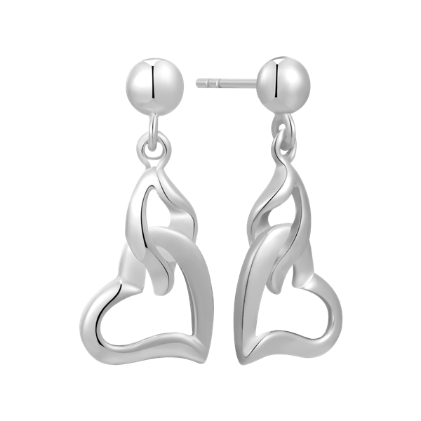 Sølv ørehænger rhodineret hjerte med blad på toppen.