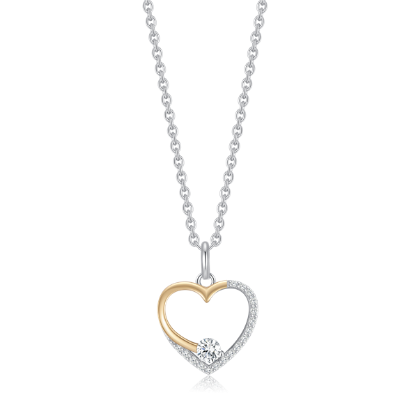 Sølv halskæde rhodineret hjerte med forgyldt i den ene kant og den anden med syntetisk cubic zirconia.
